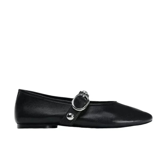 Ballerines Noir Cuir à Bride Cloutée – Audace et Confort