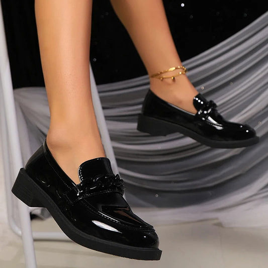 Mocassins Femme Noirs avec Chaîne Épaisse - Classe Intemporelle